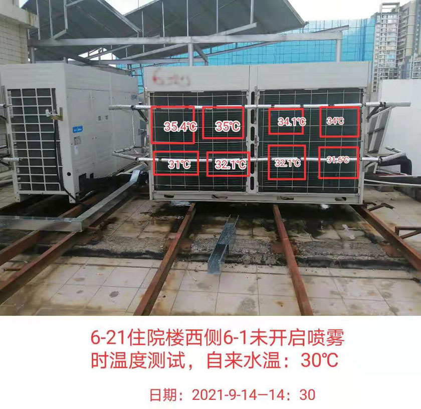使用空調(diào)霧化節(jié)能系統(tǒng)后,降溫速度快,明顯提高了蒸發(fā)效率,改善了溫度分布不均勻的現(xiàn)象,降低設(shè)備積塵率以及冷凝器壓力,提高冷凝器換熱能力,從而達(dá)到降溫和節(jié)能的效果,間接取得了經(jīng)濟效益。