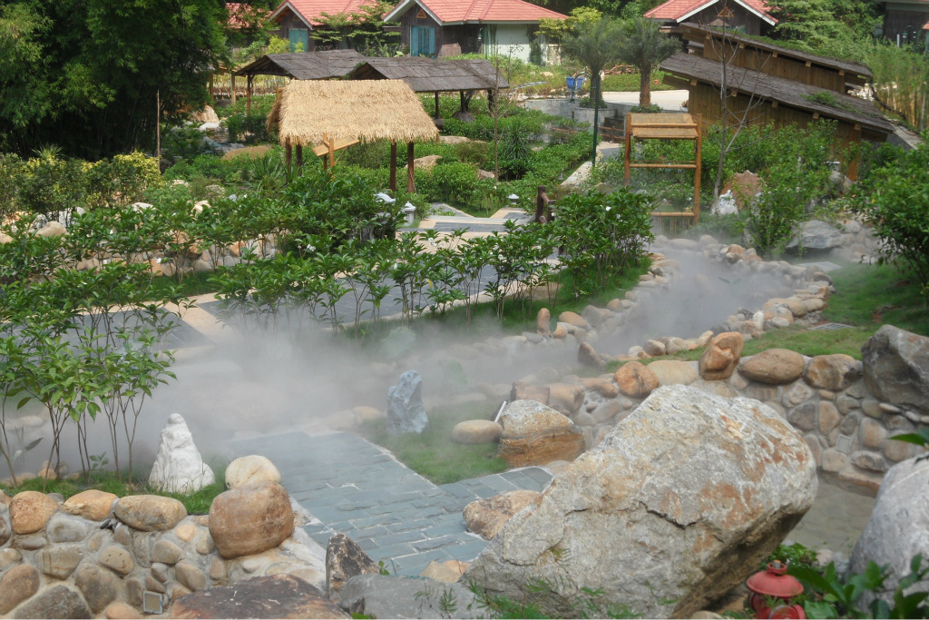 溫泉噴霧景觀人造霧產(chǎn)品全方位多功能: 降溫、造景、加濕、防塵、防靜電、除臭、消毒、噴藥、防疫、驅(qū)蟲(chóng)、驅(qū)蚊.