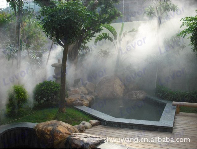 冷霧樹是應(yīng)用水對大自然氣候調(diào)節(jié)的原理,采用高壓使水滴霧化,水通過霧化系統(tǒng)以極細(xì)微霧化狀態(tài)噴出,充分與空氣混合,形成霧化粒子漂浮在空氣中,利用水的蒸發(fā),降低環(huán)境空氣的濕度。人造水霧在園林中的運用提高了景觀的視覺效果;增加空氣濕度,讓游客感覺空氣涼爽舒服;同時有助于景觀內(nèi)花卉植物的生長;夏天能起到防暑降溫的效果,讓園林成為避暑觀光的好去處.