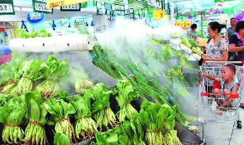 在各種大型超市中,由于超市環(huán)境復(fù)雜,原本新鮮的果蔬容易就會(huì)水份散失,代謝水平加速,一段時(shí)間下來(lái)蔬菜果瓜還未賣(mài),就已經(jīng)讓人感覺(jué)不新鮮。