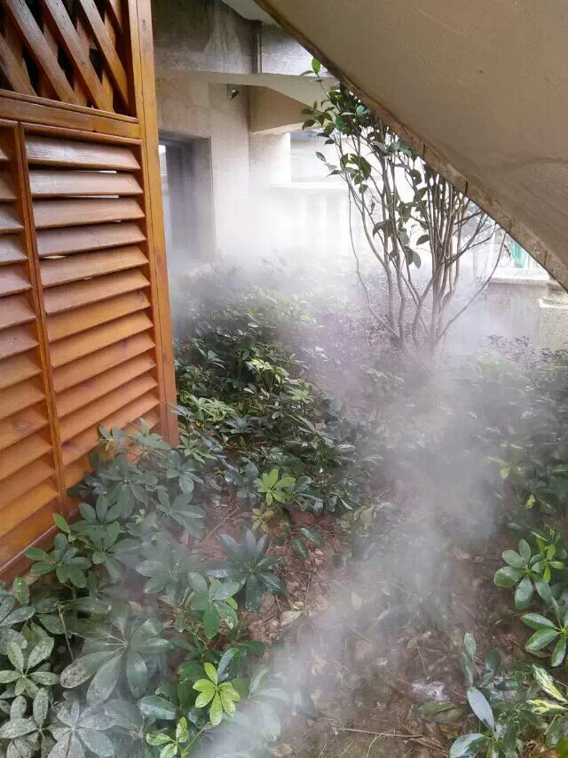 易綠公司人造霧系統(tǒng)所控制下的環(huán)境,是將濾凈新鮮的水質(zhì),經(jīng)由低壓泵將水霧氧化漂浮于空氣中,因此它可以很快的蒸發(fā),高溫時節(jié)快速蒸發(fā)的水霧可以使周圍環(huán)境在幾分鐘內(nèi)下降3~7℃左右,同時在周圍形成一層輕紗狀的云霧,防止空氣中的灰塵及其他雜物,這些陣陣霧氣能帶動空氣流動,隨之帶進新鮮氧氣(含大量負離子),此時空氣濕度呈現(xiàn)中溫中濕,這些流動的空氣加上新鮮氧氣,理論上便可以抑制病菌入侵,達到環(huán)境控制的理想舒適度。霧化因此可以同時作為保濕、降溫以及夏日消暑的多功能產(chǎn)品。由于噴霧形成特殊的云霧效果,可以為建筑以及園林景觀添姿增色,現(xiàn)已成為建筑審計與景觀設(shè)計中的寵兒。人造霧在空氣中能夠吸收大量的熱量,經(jīng)科學(xué)統(tǒng)計,每使用一公斤的激發(fā)成浮游狀態(tài)的人造霧,得到的效果等于溶解七公斤的冰。