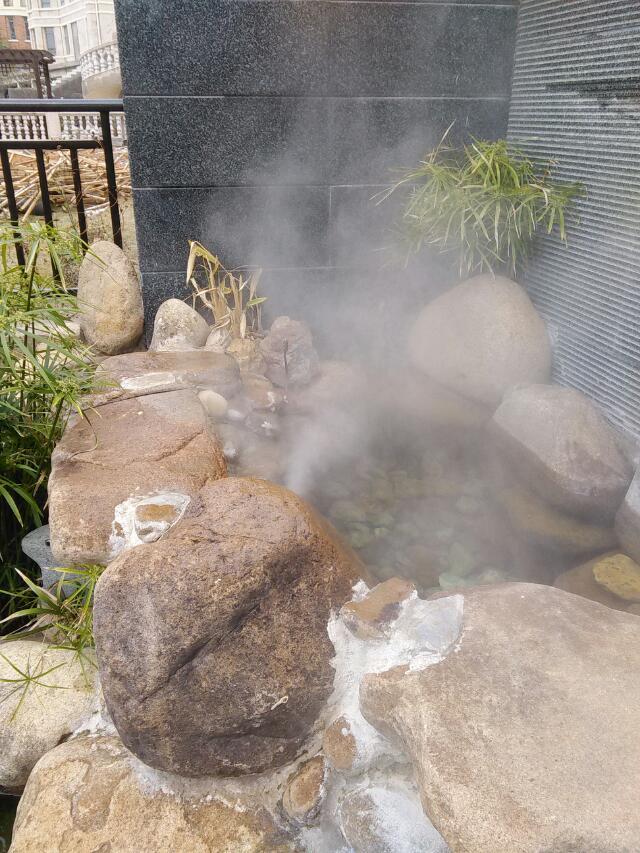 水從液態(tài)變成氣態(tài),使空氣濕度得到增大,并達到降低空氣溫度的目的,整個過程為人工造霧技術(shù)問世以來,以其經(jīng)濟、高效、方便兼具節(jié)能減碳的特色,迅速在各行各業(yè)中廣泛地得到了使用。工業(yè)、農(nóng)業(yè)、商業(yè)及園林栽培、畜牧養(yǎng)殖、環(huán)境保護、生態(tài)景觀等領(lǐng)域內(nèi),人造霧技術(shù)正逐漸發(fā)揮著越來越大的作用。運用:1)綜述:作為一種新型的造景元素,霧森技術(shù)目前在房產(chǎn)領(lǐng)域的運用已經(jīng)非常的廣泛,它既可以單獨成景,自成一方天地,也可與其他景觀元素,如水系、噴泉、假山、綠植、燈光等完美融合,創(chuàng)造出更完美的景致。而同時具有的改善小環(huán)境空氣質(zhì)量及降溫功能更提升了整體的居住氛圍,彰顯出高品質(zhì)的生活環(huán)境。2)霧于景觀元素霧與假山假山是小區(qū)景觀中常見的一種造景元素,霧與假山的結(jié)合,營造出了一種剛與柔、動與靜的和諧之美霧與水系霧因水而生,水因霧而美。水的溫婉、霧的飄渺,水霧相繞所呈現(xiàn)出的就是一副生活中的中國水墨畫卷,勾勒出一個寧靜、優(yōu)雅而又完美的生活空間霧與噴泉噴泉的靈動與水霧的靜謐,既相輔相成,又相得益彰,泉因霧而搖曳多姿,霧因泉而活潑生動,締造出別樣的風景畫卷。霧與綠植霧縈繞在樹叢間、彌漫在草坪上,再現(xiàn)山野田園的自然風貌,那可遇而不可求的清新意境,給人帶來了一種亦真亦幻的美感。霧與燈光當霧的溫婉與光的迷離融合在一起的時候,便產(chǎn)生出一種極致的視覺效果和強烈的美感,更顯其獨特的意境和氛圍
