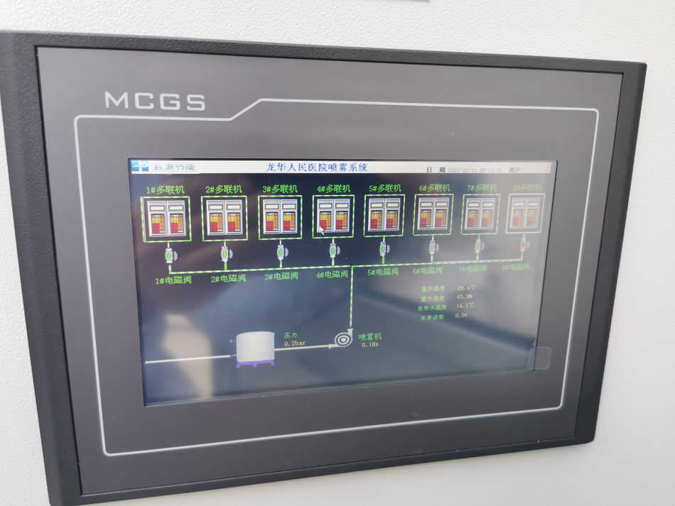 空調(diào)室外機(jī)噴霧降溫|空調(diào)室外機(jī)水噴霧降溫節(jié)能裝置由三大部分組成,水處理系統(tǒng),高壓泵站,精密噴嘴。水處理系統(tǒng)過(guò)濾精度達(dá)到5-0.01微米,普通自來(lái)水在經(jīng)過(guò)水處理系統(tǒng)的預(yù)處理后,過(guò)濾了其中泥沙、雜質(zhì)、紅蟲(chóng)、膠體、細(xì)菌、重金屬等。高壓泵站將優(yōu)質(zhì)的水加壓,通過(guò)精密噴嘴的霧化,噴出無(wú)數(shù)微米級(jí)的霧滴,這些水霧在蒸發(fā)的過(guò)程中,大量吸收周圍空氣中的熱,從而使局部環(huán)境溫度有效下降。這大大緩解中央空調(diào)機(jī)組的工作壓力,從而減少了能源的使用,提高了空調(diào)機(jī)組的工作效率,延長(zhǎng)了壓縮機(jī)的壽命。