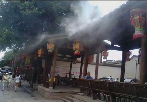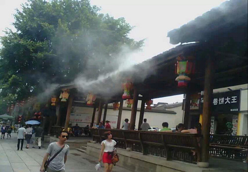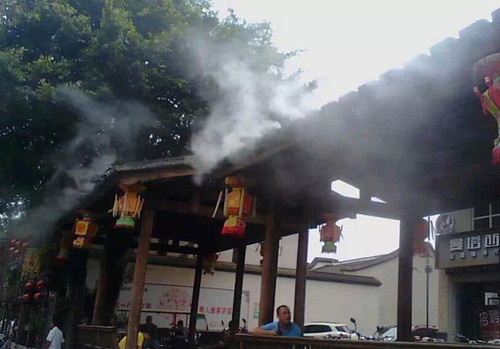 商業(yè)街商業(yè)廣場冷霧降溫產(chǎn)品全方位多功能: 降溫、造景、加濕、防塵、防靜電、除臭、消毒、噴藥、防疫、驅(qū)蟲、驅(qū)蚊.
