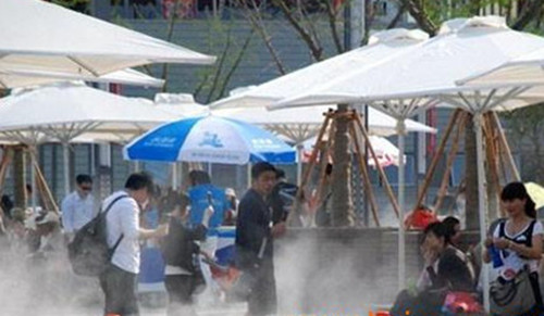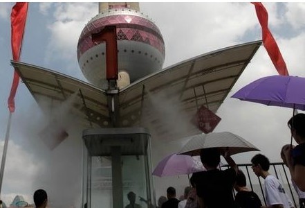 在盛夏,當(dāng)城市氣溫達(dá)到35以上時(shí),即使打著傘,戴著太陽鏡,來自太陽的直射和來自地面的反射,依然讓人感覺酷暑難當(dāng)。而在噴霧降溫系統(tǒng)的作用下,空氣溫度可降至25℃,達(dá)到人體的最佳溫度,所以即使置身炎熱室外,依然感到舒暢。