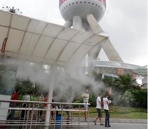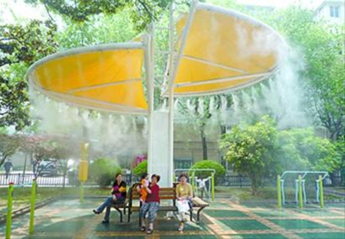 現(xiàn)在有了戶外廣場公園噴霧降溫噴霧降溫系統(tǒng),就可以局部地控制大環(huán)境的溫度。噴霧降溫系統(tǒng)散發(fā)到空氣中的水微粒,在氣化的過程中要吸收大量周圍環(huán)境中的熱量,從而降低周圍環(huán)境的溫度,是防暑降溫的有效手段。